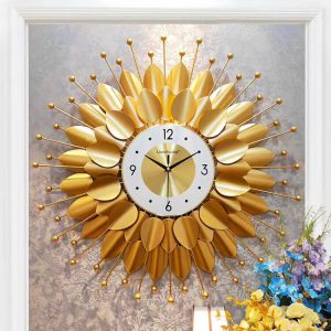 Đồng hồ trang trí hoa vàng tia mặt trời